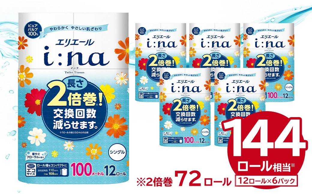 - エリエール i:na(イーナ)トイレットティシュー 12Rシングル(100m巻)(12ロール×6パック) 【 トイレットペーパー 2倍 巻 エコ フローラル 日用品 トイレ 香り付き 新生活 備蓄 防災 消耗品 生活雑貨 生活用品 コンパクト 岐阜県 可児市 】