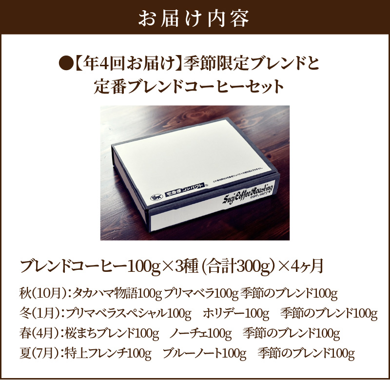 【年4回お届け】季節限定ブレンドと定番ブレンドコーヒーセット