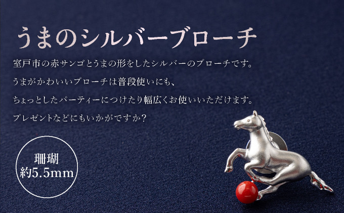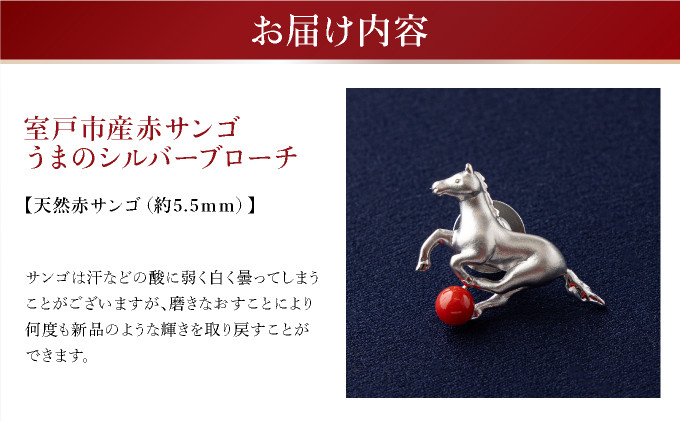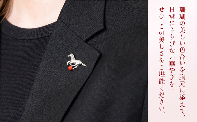 - 室戸市産赤サンゴ うまのシルバーブローチ