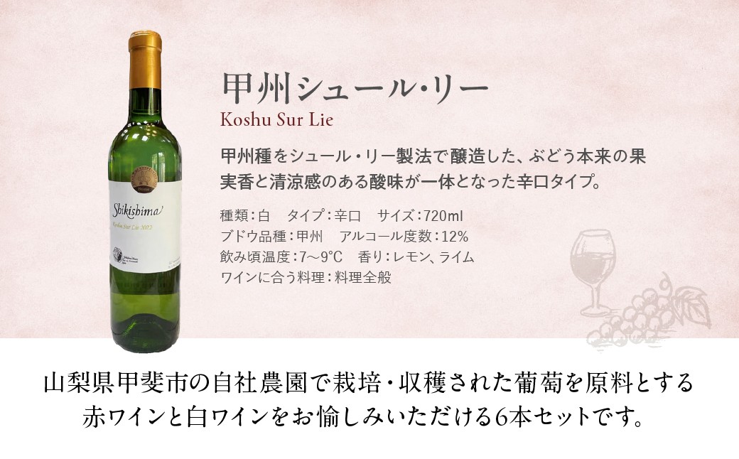 【甲州シュール・リー & マスカットべーリーA】計6本 ( 720ml ×2種 × 3本 ) 敷島醸造 赤ワイン 白ワイン わいん ワインセット 飲み比べ 甲州 辛口 ライトボディ 日本ワイン 国産ワイン 山梨 甲斐市 F-19