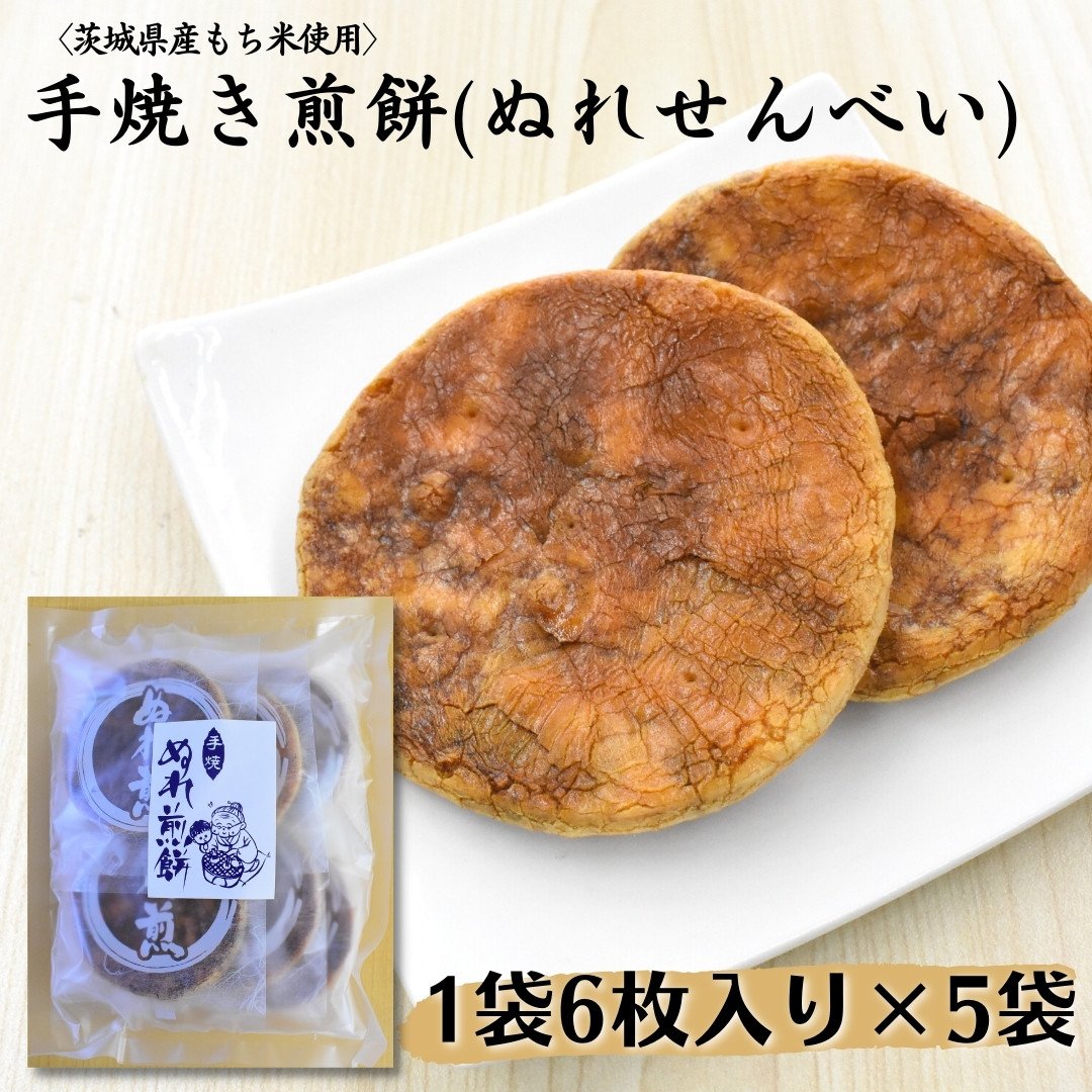 〈茨城県産もち米使用〉手焼き煎餅 ぬれせんべい 1袋6枚入り×5袋 計30枚