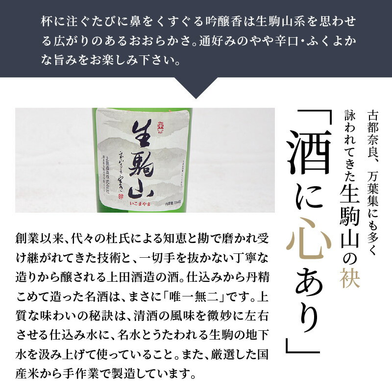 【ふるさと納税】吟醸酒 生駒山 720ml やや辛口 老舗 上田酒造 名酒 日本酒 アルコール 通 こだわり フルーティー 山田錦 100% お酒 酒 誕生日 プレゼント 贈り物 お祝い 人気 ギフト お土産 国産 上田酒造株式会社 奈良県 生駒市 送料無料