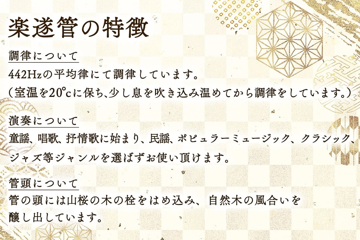 - 篠笛楽遂 ドレミ調八笨調子 (C調) 姿仕上げ、笛袋と篠製こはぜ付き|甘楽町 篠笛 楽器 袋 初心者 プロ 群馬県ふるさと伝統工芸品 [0088]