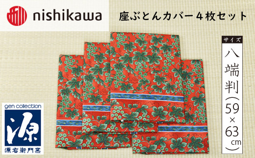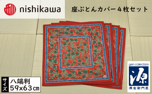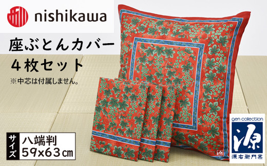 - No.439 西川座ぶとんカバー八端判GN608H R色4枚セットPG12103096 / 座布団カバー 銘仙版 ロングファスナー 送料無料 埼玉県