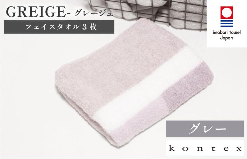 - グレージュ フェイスタオル 3枚セット ブルー (同色3枚) [I001790FT3B]