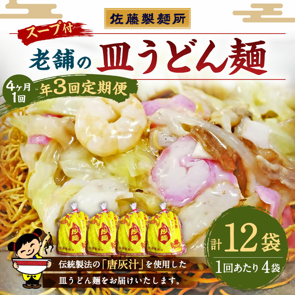 - 【ふるさと納税】【年3回定期便】老舗の 長崎皿うどん麺 2人前×4袋×3回 計24人前 スープ付き 皿うどん 麺 麺類 国産 常温 九州 長崎県 長崎市 送料無料