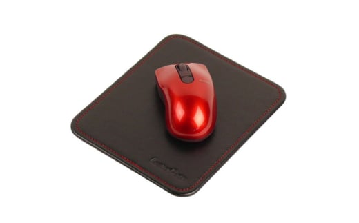 - 本革マウスパッド【コンパクトサイズ】(ブラックレッド)*革がブラック、縫い糸がレッド