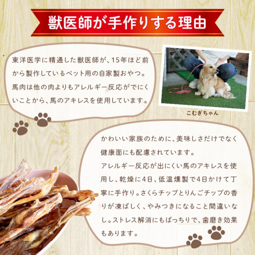 【獣医師手作り】無添加 ペット用 アキレスくんせい (大サイズ) 計300g ジャーキー ストレス解消 歯磨き効果 燻製 犬 猫 やみつき おやつ ご褒美 馬肉アキレスを使用 H191-002