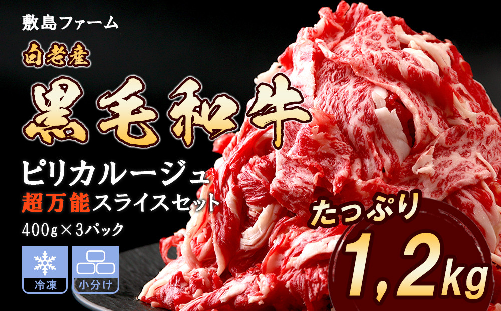 白老産黒毛和牛1.2kgピリカルージュ超万能スライスセット(400g×3パック)