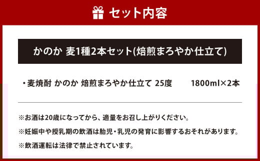 - かのか 麦焼酎 1種 1800ml×2本セット(焙煎まろやか仕立て) 25度 紙パック 麦 焼酎 お酒 ニッカウヰスキー 国内製造 国産