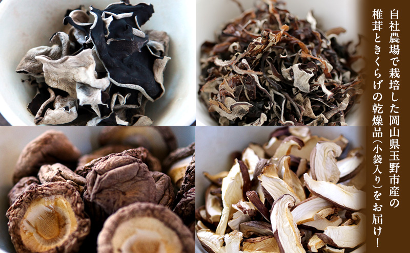 有機JAS 乾燥 しいたけ ・ 乾燥 きくらげ 4種各2個 詰合せ オーガニック 野菜 きのこ 岡山県 玉野市 栽培期間中化学肥料不使用 栽培期間中農薬不使用