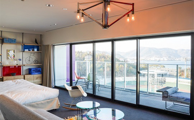 瀬戸内海の美しい景色を望む「KEIRIN HOTEL 10」の9000円ぶんのチケットです。競輪や自転車をテーマにしたユニークなデザインが施された空間で、非日常を体験できます。ホテル内のレストランFORQでは、地元の海の幸や山の幸をふんだんに使った料理を楽しめます。クラフトビールやスイーツも充実し、カフェタイムも満喫。宿泊やレストランを心ゆくまで堪能してください。
