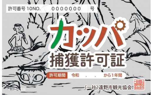 カッパ捕獲許可証 / カッパを捕獲して、仲良く遠野市観光協会に行くと、賞金1,000万円!