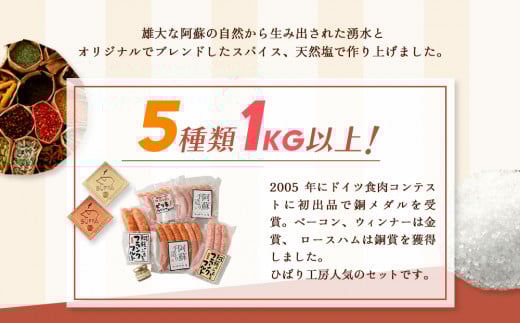 - ★レビューキャンペーン対象返礼品★”阿蘇のソーセージ詰め合わせ(高菜マスタード付)”たっぷり5種類!1kg以上!! ひばり工房 ハム ウインナー ウインナーソーセージ マスタード 高菜 タカナード SUFFA 金賞受賞 阿蘇さとう農園 スパイス スパイスセット豚肉 お歳暮 お中元 おもてなし 手土産 お祝い メイン 料理 セット 焼くだけ ジューシー 人気 ギフト 贈り物 贈答用 熊本県 阿蘇市