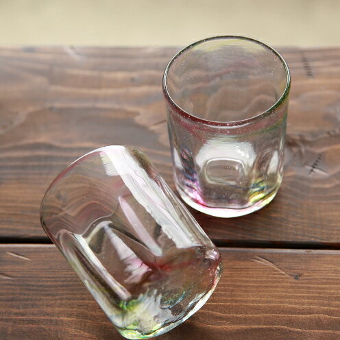 - 【ふるさと納税】【琉球ガラス工房 硝子家すずめ】オーロラ・ロック<ペア> 〇 グラス ロックグラス 虹色 伝統工芸品 綺麗 ふわふわ インテリア セット プレゼント 贈り物 雑貨 普段使い 沖縄 読谷村