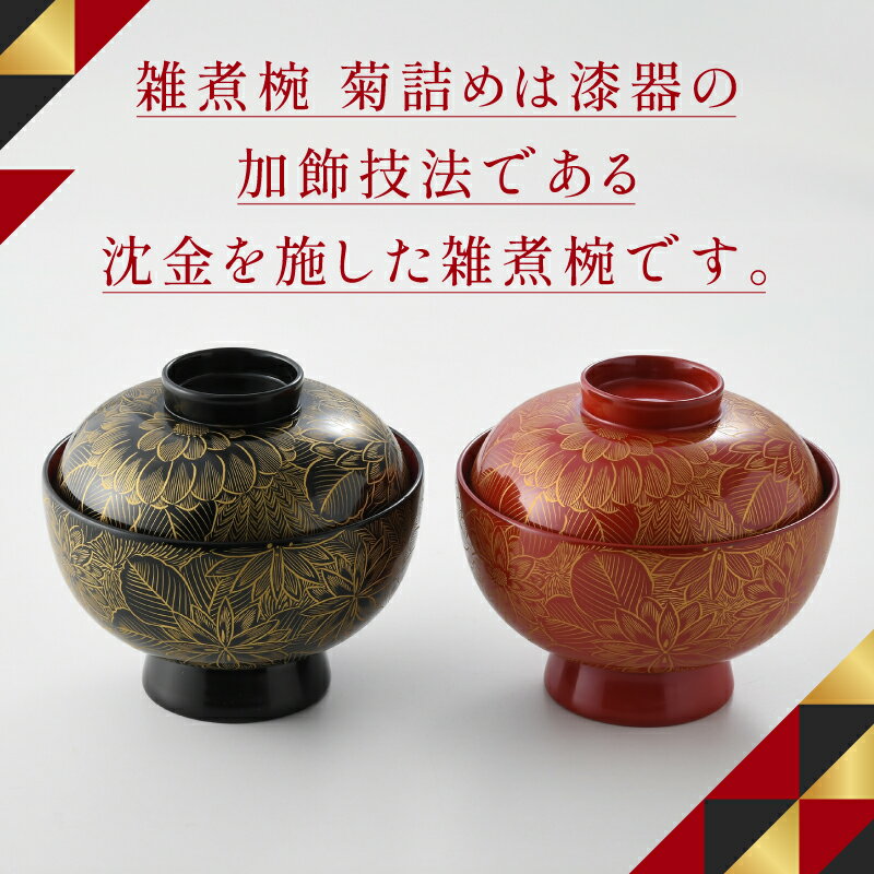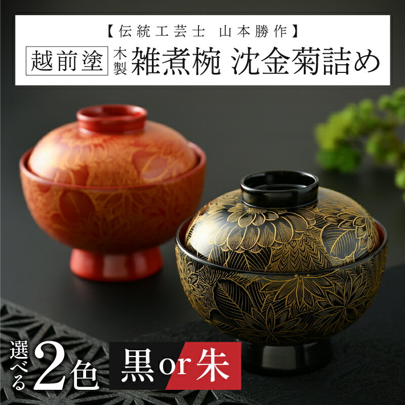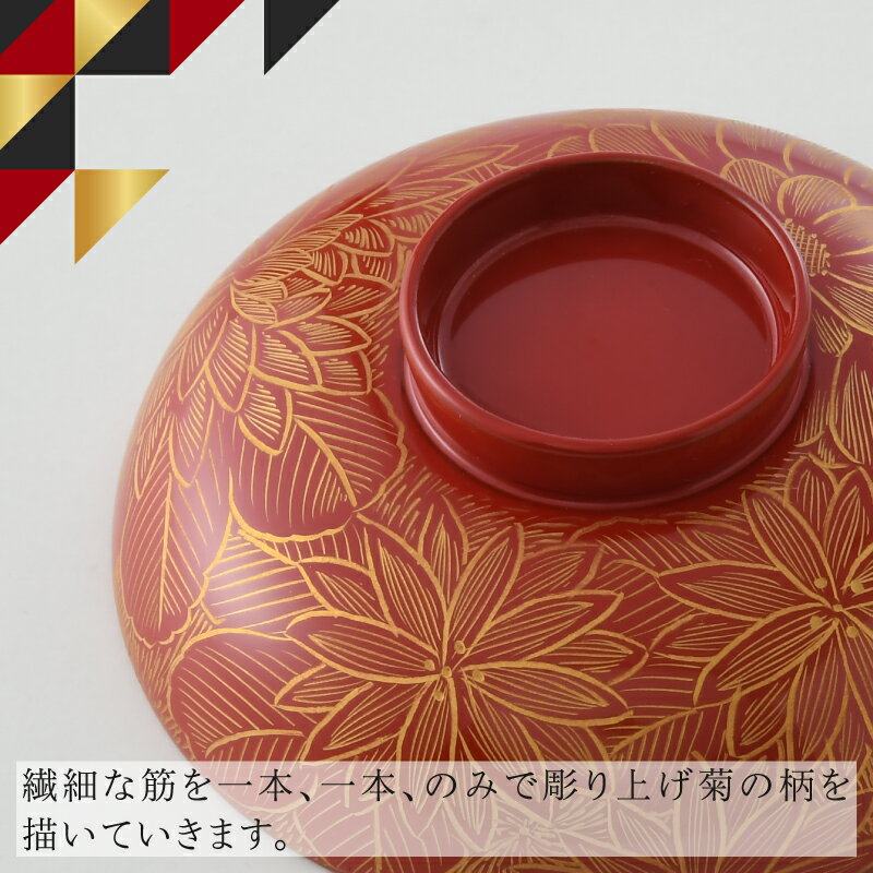 【ふるさと納税】【選べるカラー】雑煮椀 沈金菊詰め 越前塗 木製 黒・朱【伝統工芸士 山本勝作】[N-04401] /お椀 味噌汁 ご飯茶碗 漆塗り 漆器 Kyutarou BLUE 漆器久太郎 和食器 木製 おしゃれ 伝統工芸品 福井県鯖江市