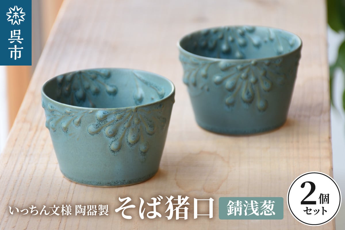 - いっちん文様 陶器製 そば猪口 渋い錆浅葱色 2個セット