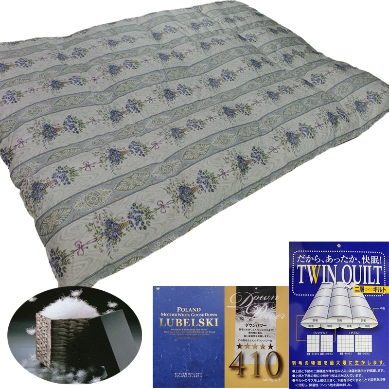 - 羽毛掛け布団 シングル 羽毛布団【ポーランド産マザーグース93%】ダウンパワー410【二層ブルー】羽毛布団 寝具 羽毛ふとん 羽毛掛けふとん 本掛け羽毛布団 冬用 羽毛布団 FAG154