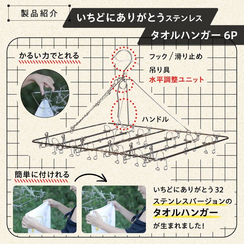 - いちどにありがとうステンレス タオルハンガー6P【岐阜県 可児市 日用品 雑貨 ハンガー 洗濯 物干しハンガー ステンレス ピンチハンガー 部屋干し コンパクト 軽い力 丈夫 軽量 シンプル デザイン 洗濯物 】