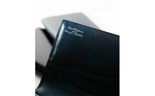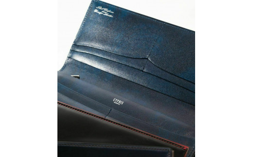 - キプリス本革製コードバンxシラサギレザーファスナー付きササマチ長財布 カラー:ブラックxネイビー【kt026-015-2】