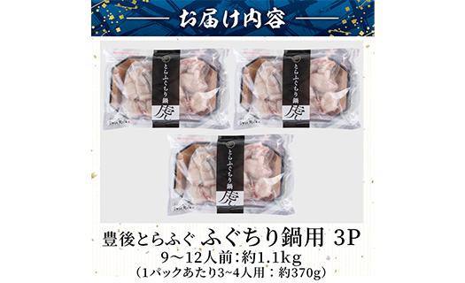 豊後とらふぐ ふぐちり鍋用3Pセット(計約1.1kg・9-12人前) フグ 鍋 ふぐちり 冷凍 養殖 海鮮 魚介 国産 大分県 佐伯市【AB225】【柳井商店】
