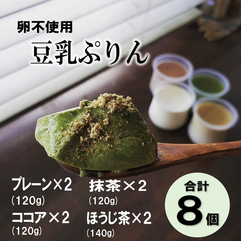 (1088)豆乳ぷりん ぷりん プリン 豆乳プリン 豆乳 卵不使用 プレーン ココア 抹茶 ほうじ茶 4種類 8個 セット ギフト プレゼント 贈り物 スイーツ デザート 和風 おやつ