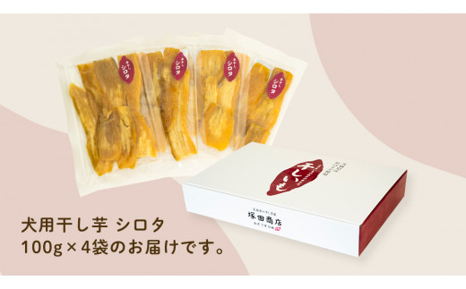 犬のおやつ 国産 干し芋 シロタ 400g (100g × 4袋) 送料無料 保存料不使用 訳ありドックフード 国産手作り さつまいも 人気 少量 個包装 栄養 効能 犬 わんちゃん 訳あり小袋 ドックフード 小分け