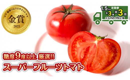 - 先行予約 【定期便】 1.5kg×3箱× 3回お届け! スーパーフルーツトマト中箱 【大玉 12~15玉/1箱】糖度9度以上[AF045ci]