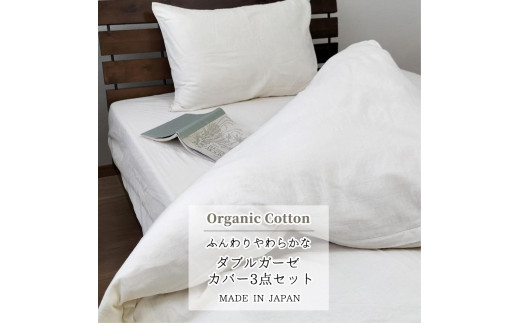 無漂白2重ガーゼ 掛カバー・ボックスシーツ・枕カバー3点セット【セミダブル】キナリ GSW-3SET4363