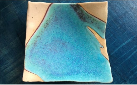 [№5221-0438]飯能焼(碧釉皿(へきゆうざら))