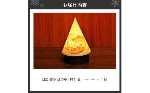 - 炎がゆれるLED照明 雪を被った樹木 ゆらぎの灯「灯の樹」 時計台