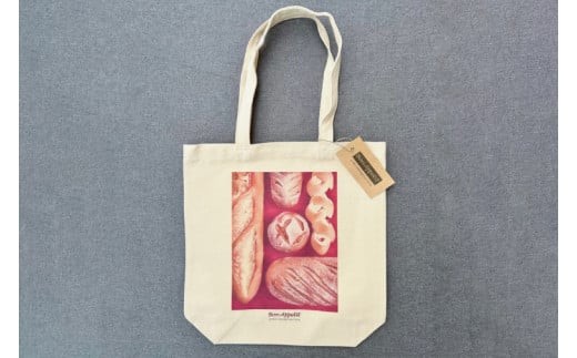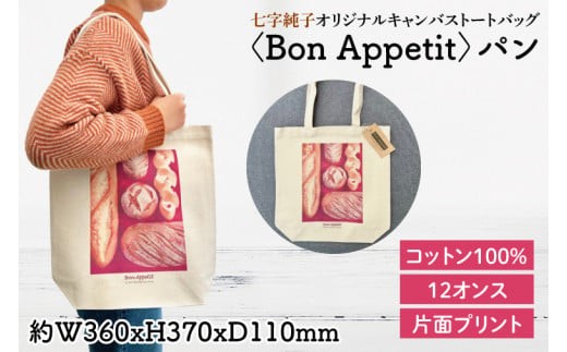 - 七字純子オリジナルキャンバストートバッグ〈Bon Appetit〉パン【パステル画 通勤 通学 おしゃれ A4サイズ オリジナル アート コットン100% トートバック バック 七字純子 茨城県 水戸市】(FZ-7)