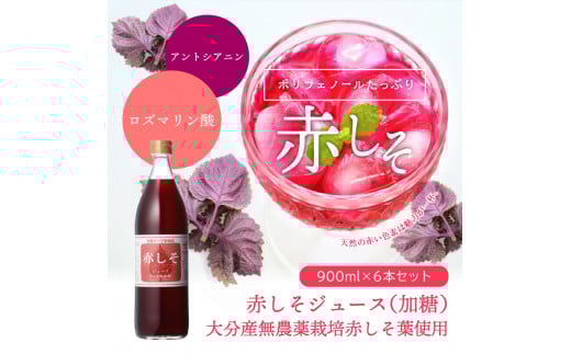 赤しそジュース 加糖タイプ 900ml×6本 大分 赤しそ ジュース シロップ 無農薬 すっきり さわやか ポリフェノール 常温 健康 F10014