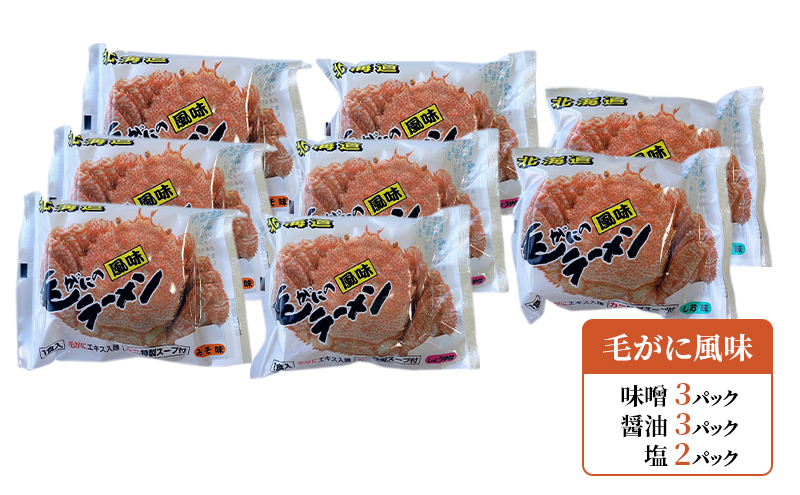 - ラーメン 定期便 3ヵ月 北海道オホーツク毛がに風味ラーメン(乾燥ラーメン8食セット) らーめん 乾麺 ノンフライ麺 かに カニ スープ付き