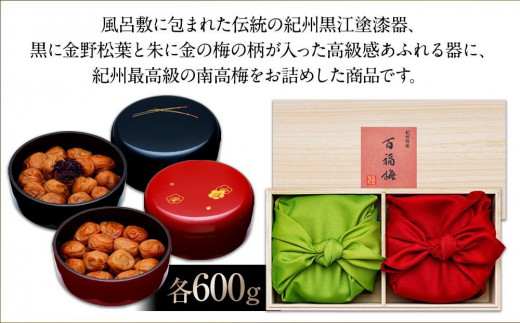 - 紀州産南高梅 有田みかん蜂蜜梅600g・うす塩味梅600g 紀州黒江塗漆器 梅花と松葉 桐箱入