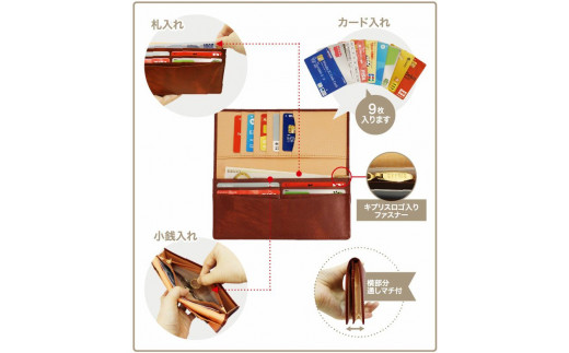 キプリス本革製シラサギレザーファスナー付通しマチ長財布 カラー:ネイビー【kt026-020-4】