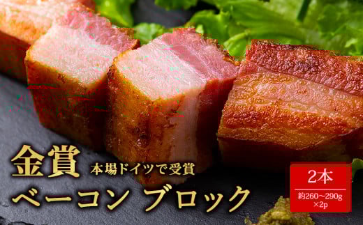 ★レビューキャンペーン対象返礼品★本場ドイツ食肉コンテストsuffa★金賞受賞★ ベーコンブロック 2本 約260g~290g×2 お試し どんな料理も一味ランクアップ♪ ベーコン ふるさと納税 豚肉 オリジナルスパイス ひばり工房 冷蔵 燻製 お弁当 おかず 手造り おつまみ 朝食 贅沢 美味しい スモーク 贅沢 お取り寄せ 豪華 贈答品 贈り物 おもてなし 人気 金賞受賞 熊本県 阿蘇市