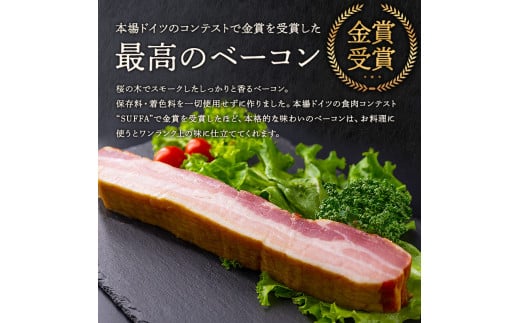 - ★レビューキャンペーン対象返礼品★本場ドイツ食肉コンテストsuffa★金賞受賞★ ベーコンブロック 2本 約260g~290g×2 お試し どんな料理も一味ランクアップ♪ ベーコン ふるさと納税 豚肉 オリジナルスパイス ひばり工房 冷蔵 燻製 お弁当 おかず 手造り おつまみ 朝食 贅沢 美味しい スモーク 贅沢 お取り寄せ 豪華 贈答品 贈り物 おもてなし 人気 金賞受賞 熊本県 阿蘇市