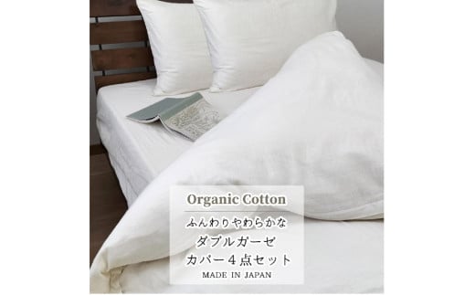 無漂白2重ガーゼ 掛カバー・ボックスシーツ・枕カバーX2 4点セット【ダブル】キナリ GW-4SET4363