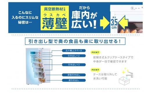 スリム冷凍庫 120L IUSN-S12A-W ホワイト