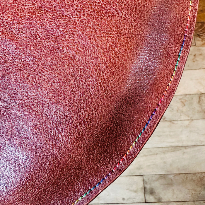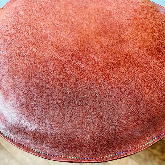 - 67-8 国産牛革 レザークッション 座布団(ブラウン・レインボーステッチ)