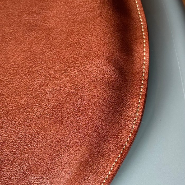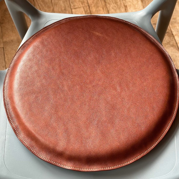 - 67-9 国産牛革 レザークッション 座布団(ブラウン・ハニーゴールドステッチ)