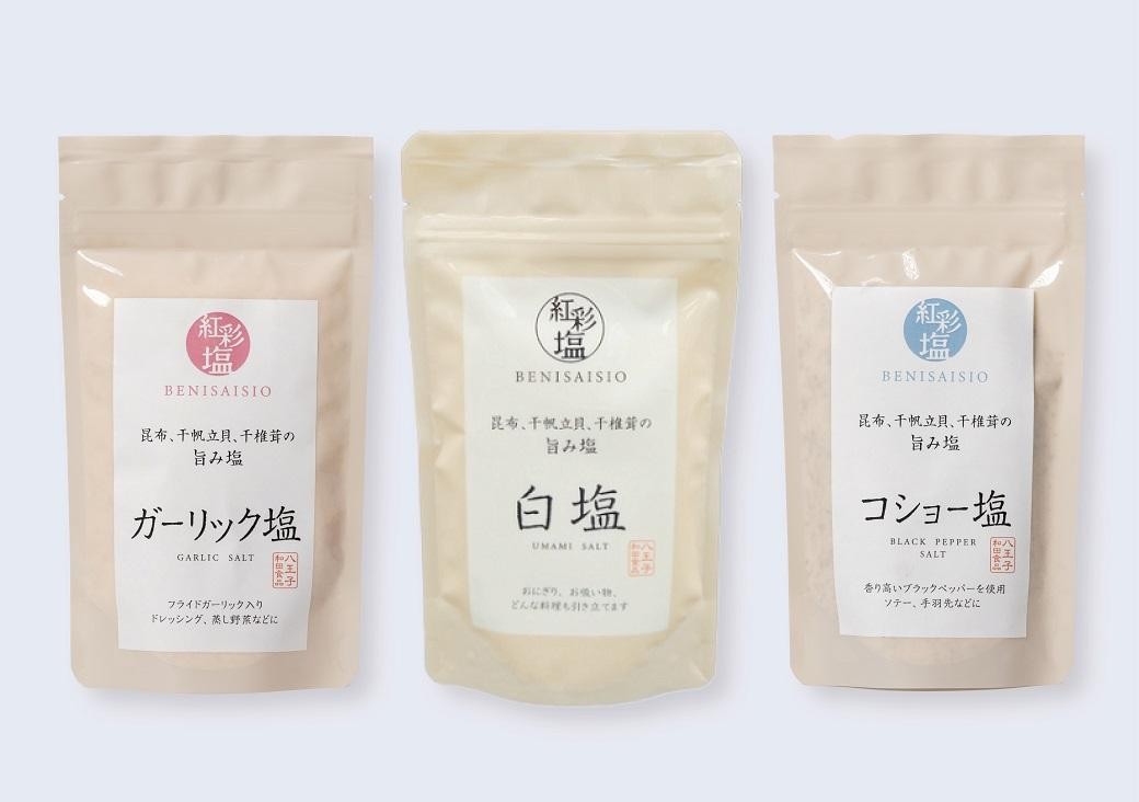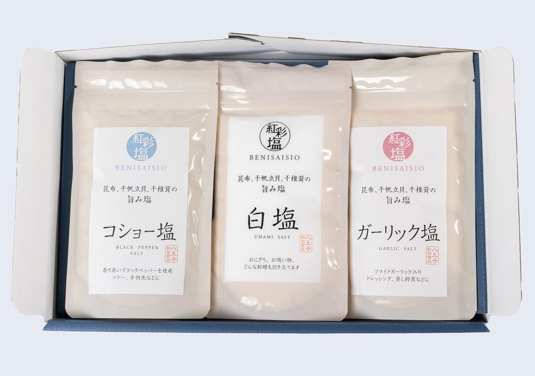 - 国産天然のだし素材を使用した贅沢調味塩 「紅彩塩 べにさいしお」3種セット