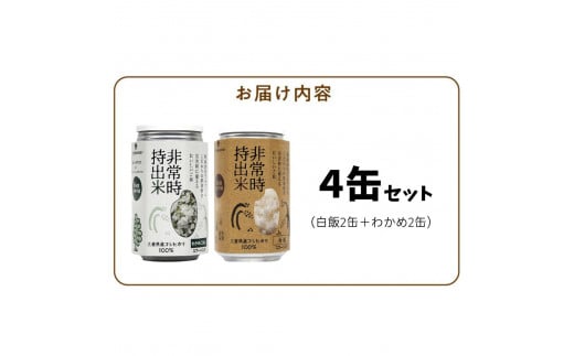 - 非常時持出米 白飯×2、わかめごはん×2 【4缶セット】 長期保存食 防災食 備蓄用_非常時持出米 白飯 わかめごはん【セット】 長期保存食 防災食 備蓄用 非常食 8年 保存 保存食 備蓄食 防災 防災用品 防災グッズ 米 白米 おにぎり 缶 セット わかめ 避難グッズ レジャー アウトドア キャンプ 常温 久留米市 送料無料_Ca234