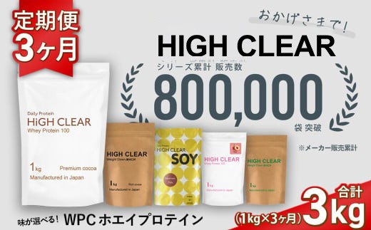 プロテイン 定期便 《1kg × 3ヶ月》 味が選べる!おいしい ホエイプロテイン | 抹茶 / ココア / チョコ バナナ / ピーチ / ミックス フルーツ | HIGH CLEAR 定期 3回 国産 日本製 SDGs ホエイ ぷろていん タンパク質 たんぱく質 ビタミン 食物繊維 栄養 筋肉 健康 筋トレ トレーニング ダイエット 宮城県 七ヶ浜 | hk-wpc-1000-t3