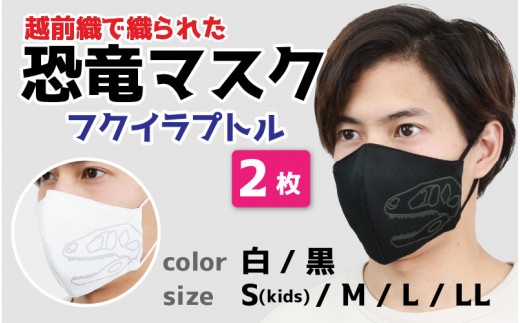 越前織で織られた 「恐竜マスク フクイラプトル」 白・黒 2枚セット [A-3341]