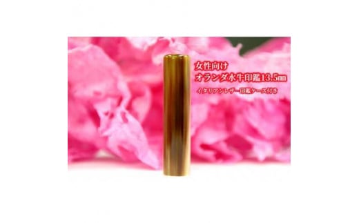 - 【女性向け】手彫り職人が彫ったオランダ水牛印鑑13.5ミリ イタリアンレザ-印鑑ケース付き