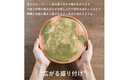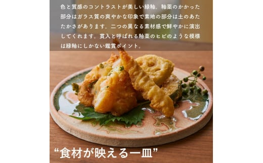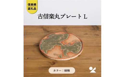 - 古信楽丸プレート L (緑釉) ks-02【信楽焼・明山】