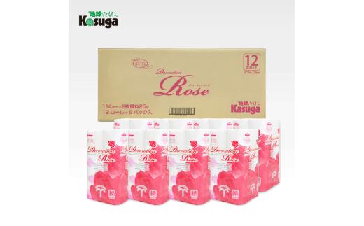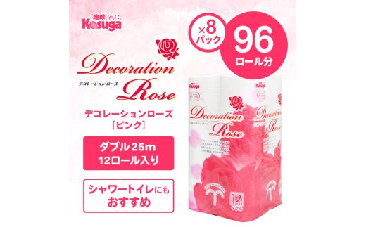 トイレットペーパー デコレーションローズ ピンク 96ロール (12R×8パック) ダブル ふんわり感 吸水性 古紙 大容量 まとめ買い 備蓄 防災 日用品 消耗品 柄・色付き 香り付 96個 富士市 [sf023-024]