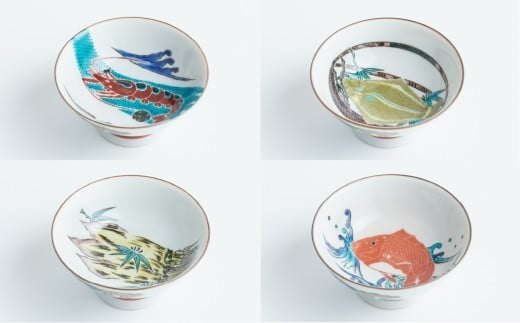- 作家 さかずき 九谷焼「五趣盃 海の幸」打田幸生